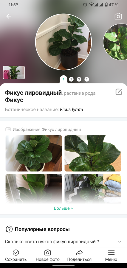 В карточке с описанием растения находится вся самая необходимая информация о нём. Конечно же, в первую очередь это другие фотографии и название цветка, принадлежность к роду и ботаническое название.
