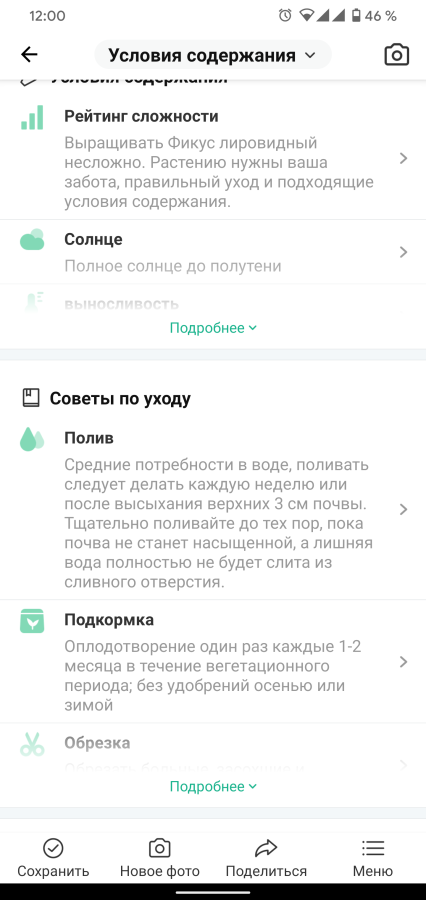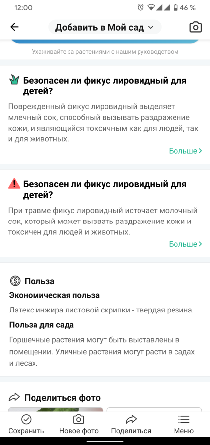 Все распознанные растения можно добавить в «Мой сад». Это своего рода мобильная библиотека с каталогом ваших цветков. Из неё вы быстро можете перейти к карточке растения и ещё раз посмотреть всю информацию.