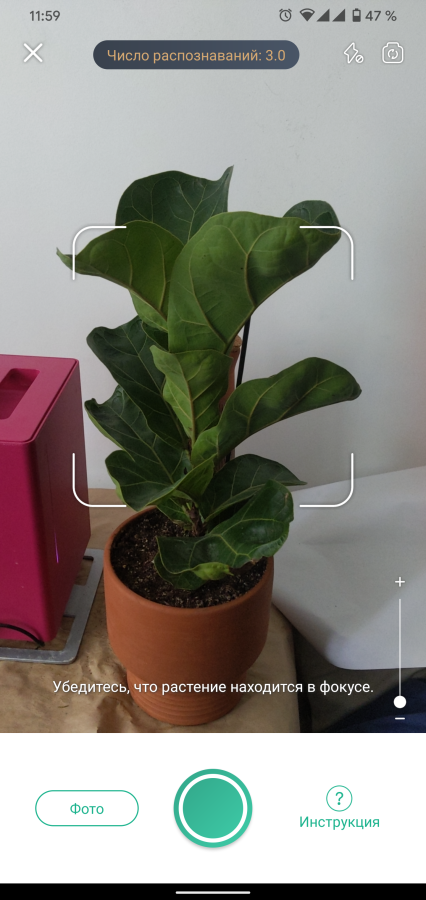 А вот на мобильном нужно запустить PictureThis, активировать камеру и сделать снимок растения. Конечно, также можно загрузить уже готовую фотографию.