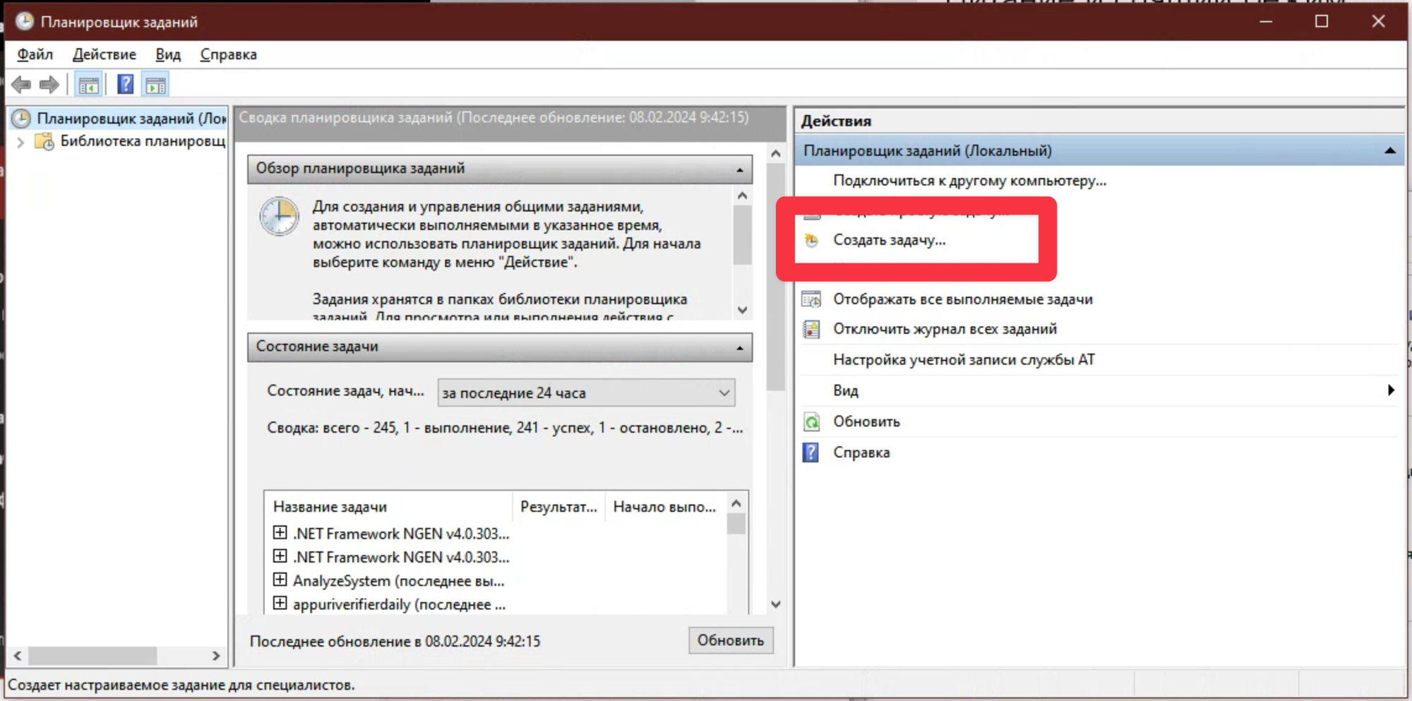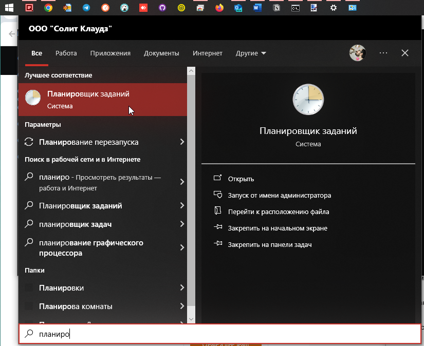Теперь откройте Планировщик заданий, который можно найти в меню Пуск.