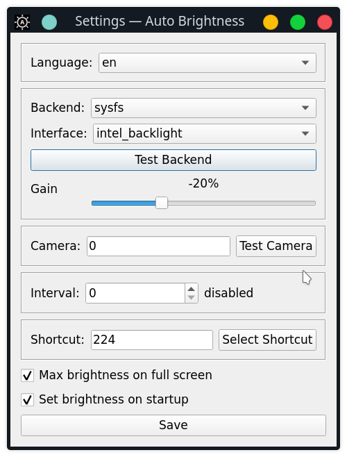 - Выбрать технологию изменения яркости (sysfs — для *nix, powercfg — для Windows);