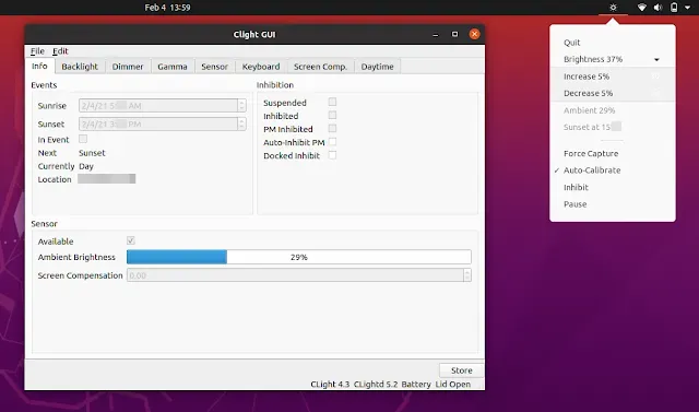 Clight поддерживает автонастройку яркости и цветовой температуры монитора, яркости кнопок клавиатуры, затемнение монитора по таймауту. В настройках можно выставить необходимые параметры для более комфортной работы.