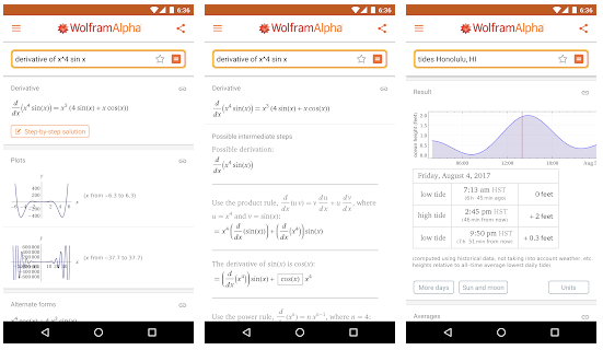 Поддерживает арифметику, алгебру, тригонометрию, геометрию, построение графиков, дифференциальные уравнения, факторизацию, функции, логику, теорию множеств, статистику, вероятность, определения и историю математических терминов. За $ 7 в месяц Pro подписки добавить поддержку ввода информации с помощью изображения.