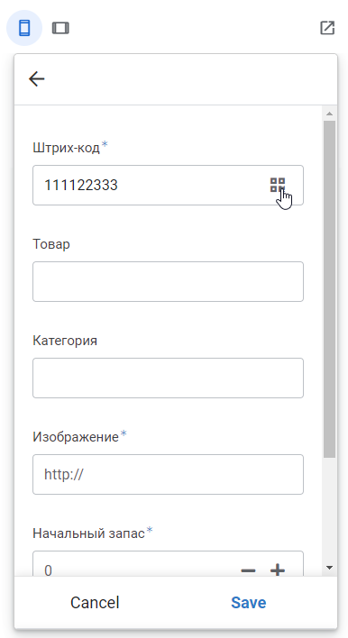 Теперь ваше приложение готово записывать любое движение запасов, независимо от того, находятся они на складе или нет. Чтобы отсканировать товар, просто тапните по кнопке сканера штрих-кода в одном из своих представлений.
