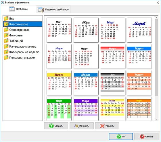 В «Дизайне Календарей» имеется обширная подборка шаблонов на любой вкус, поэтому разработать красивый, стильный и оригинальный дизайн — задача несложная.