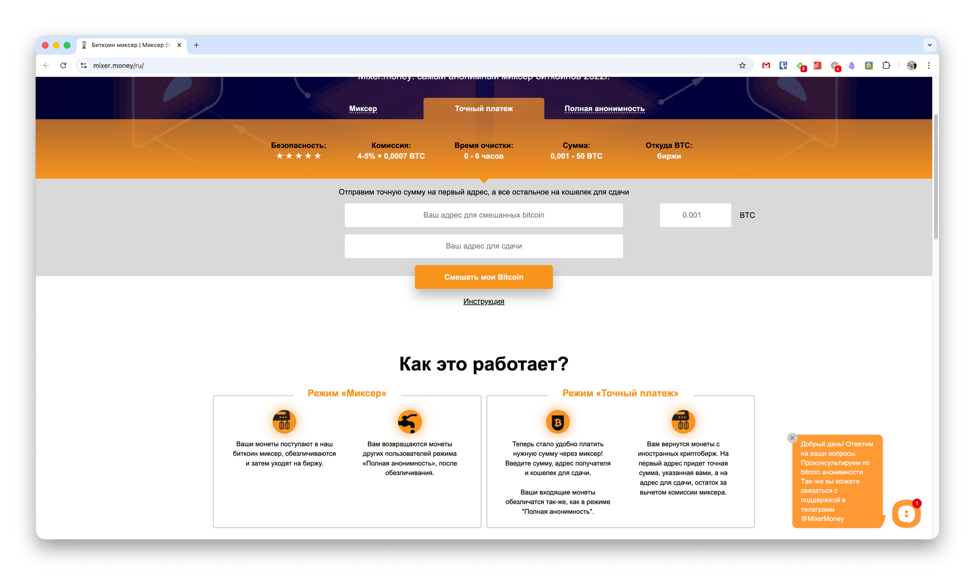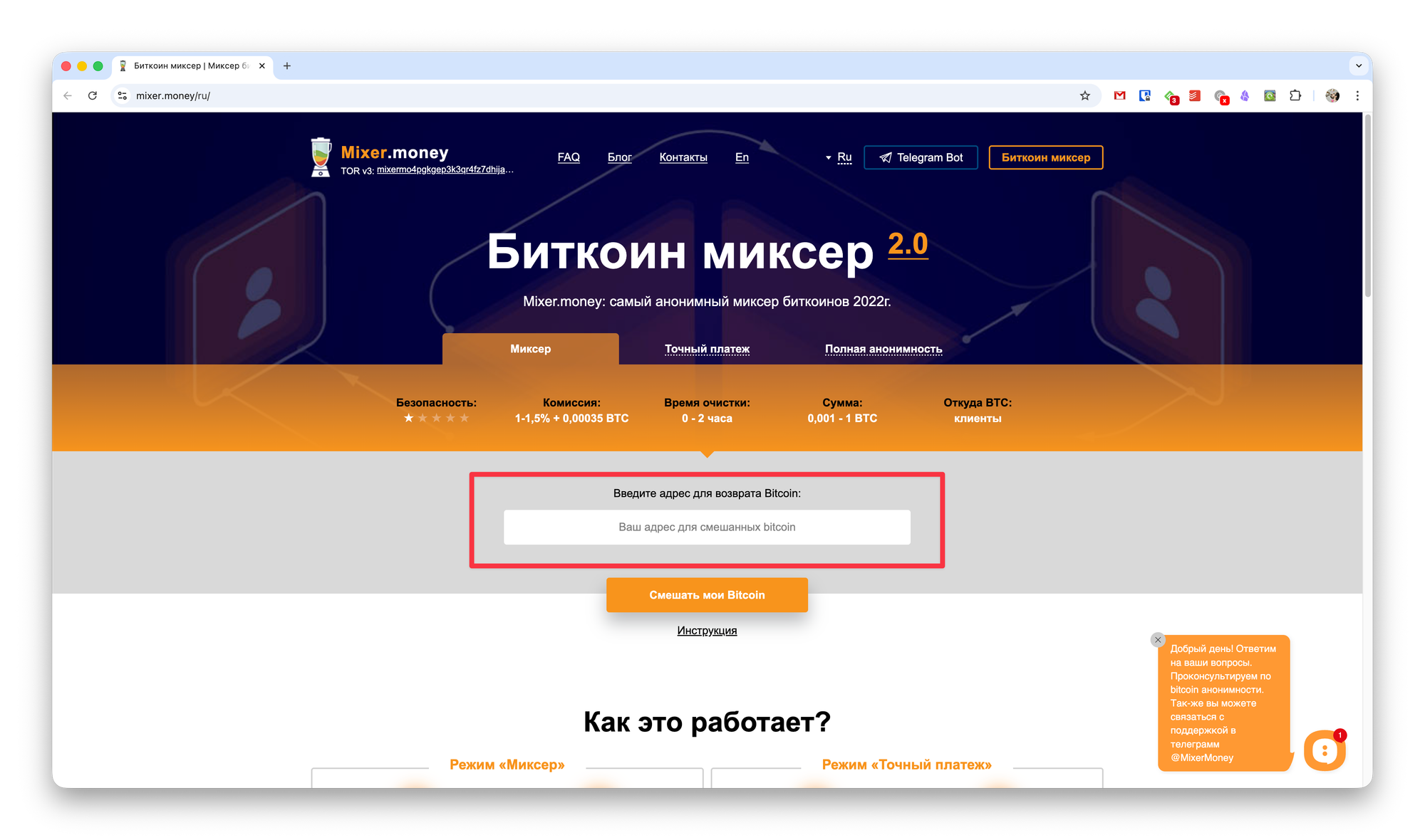 Один из таких сервисов — русскоязычный Миксер мани. С его помощью можно решить сразу три задачи по смешиванию BTC.