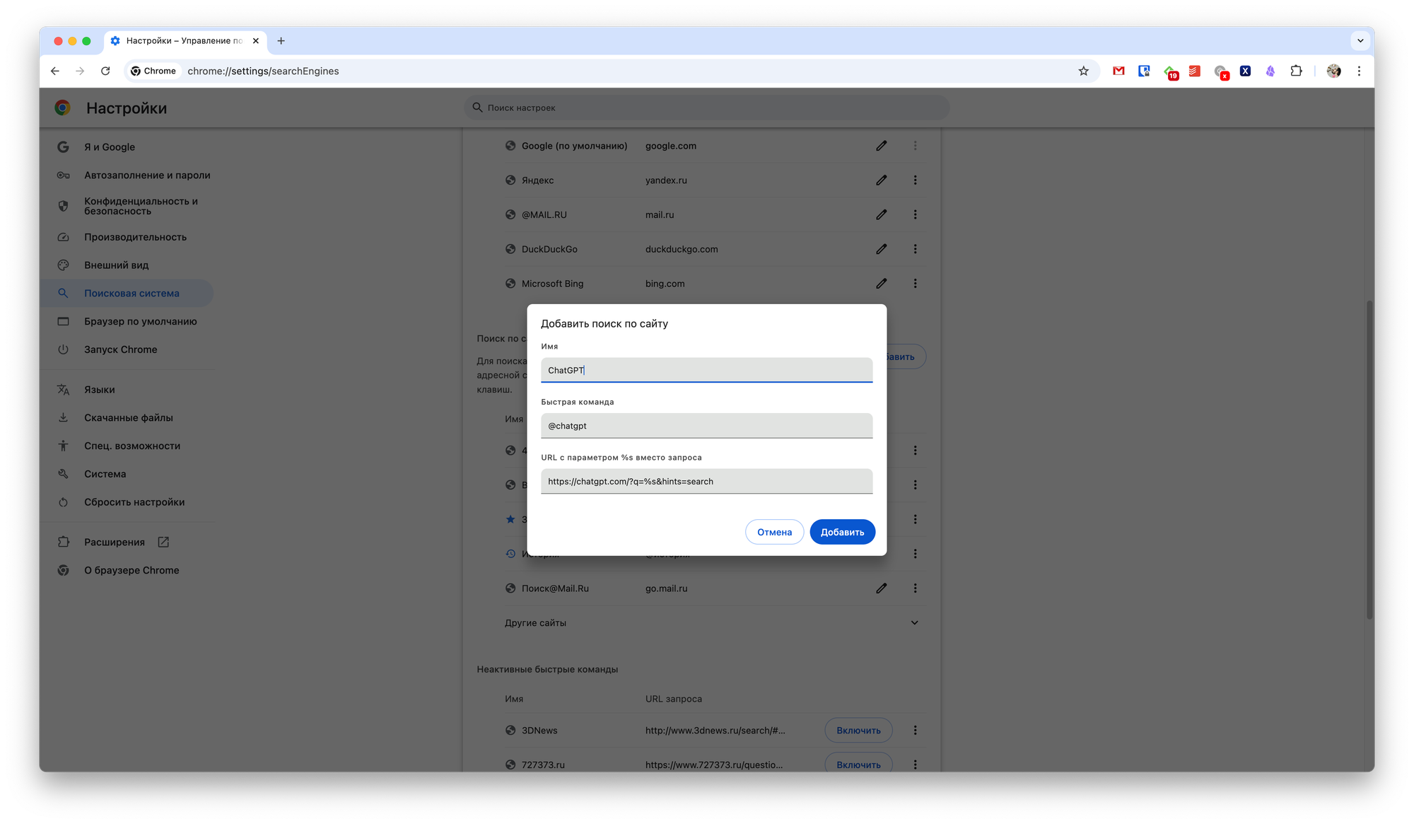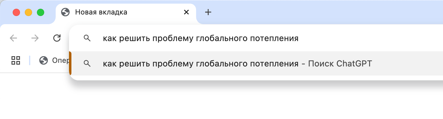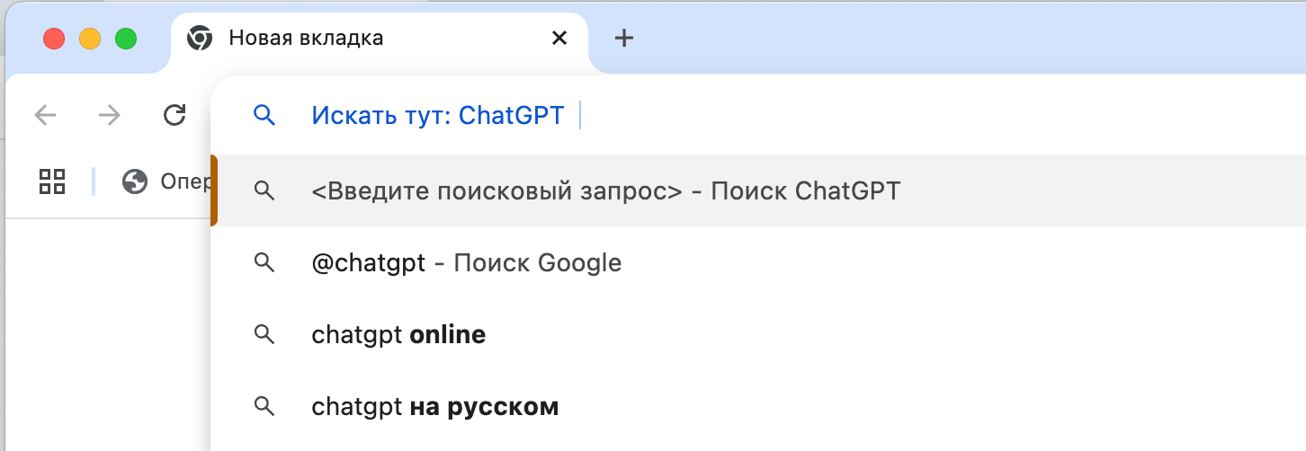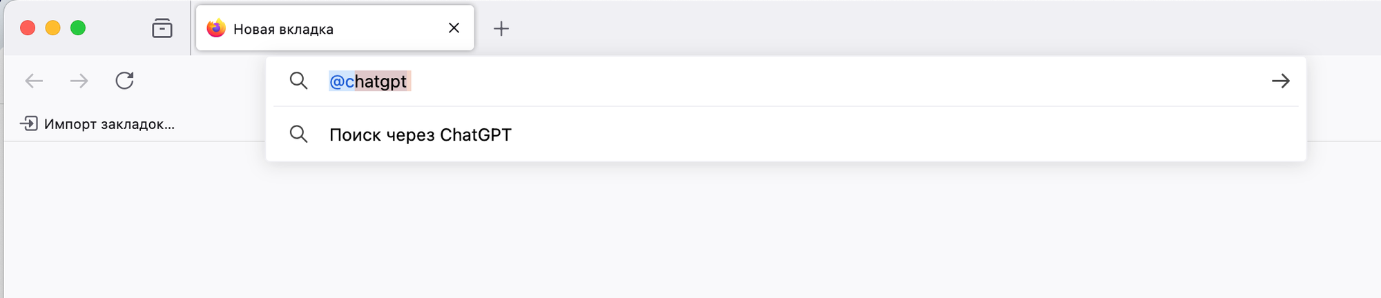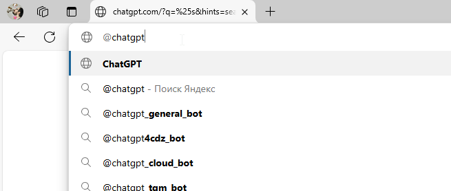 Теперь для поиска с помощью нейронки введите в омнибар @chatgpt и ваш поисковый запрос.