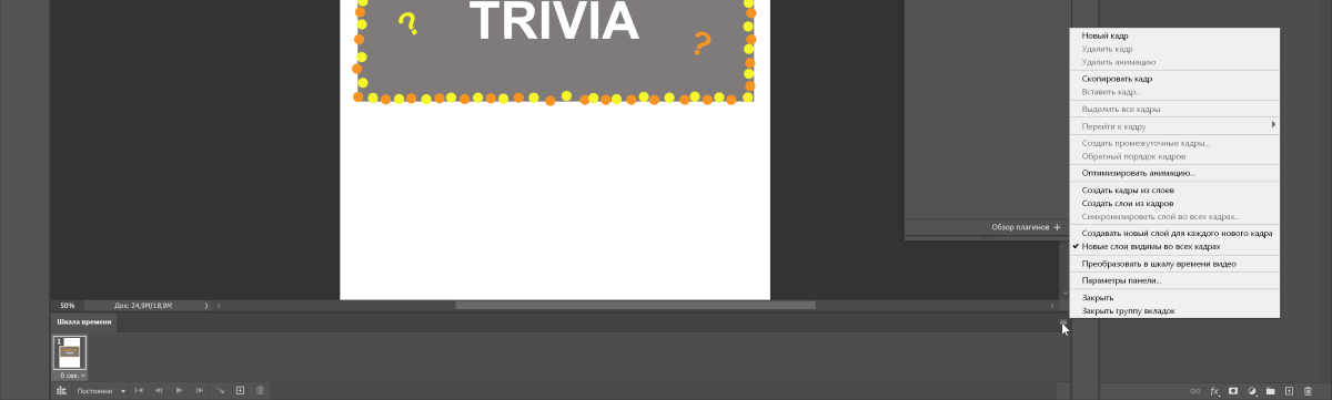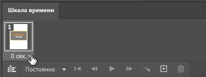 Если вы видите вот такую кнопку «Create Video Timeline» (Создать шкалу времени для видео), её нужно поменять на «Create Frame Animation» (Создать анимацию кадра).