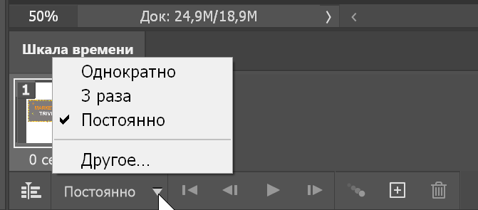 По умолчанию будет выставлено Once (Однократно), однако вы можете зацикливать кадр столько, сколько захотите. Чтобы выставить своё значение, выберите Other (Другое).