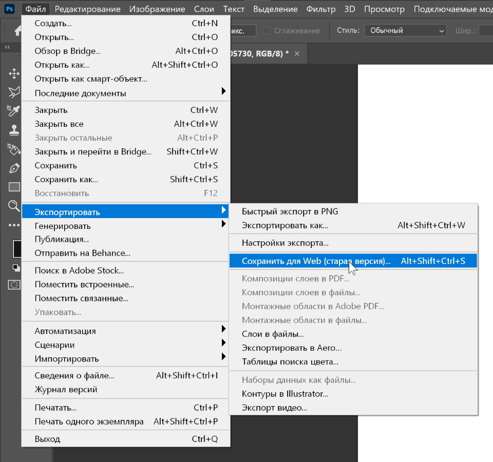 Довольны получившимся гифом? Если да, то сохраните его для использования в сети, нажав в верхней панели управления File > Export > Save for Web (Legacy) (Файл > Экспортировать > Сохранить для Web (старая версия)).