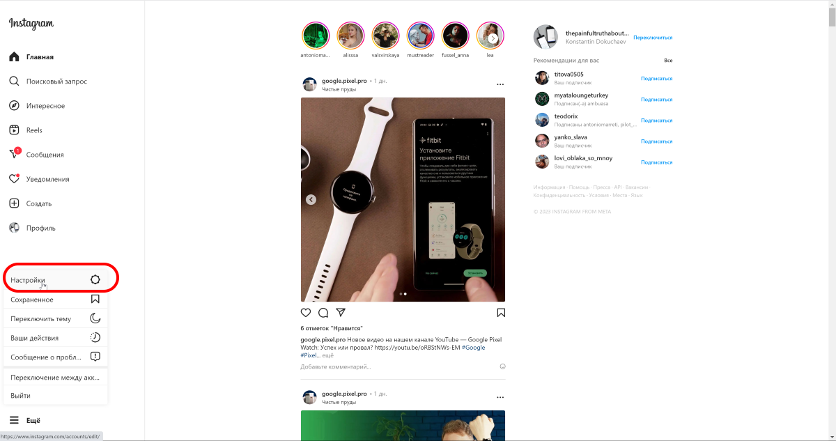 Шаг 1: Первым делом надо скачать данные вашего аккаунта Инстаграм. Для этого зайдите в свой профиль и перейдите в раздел Настройки.