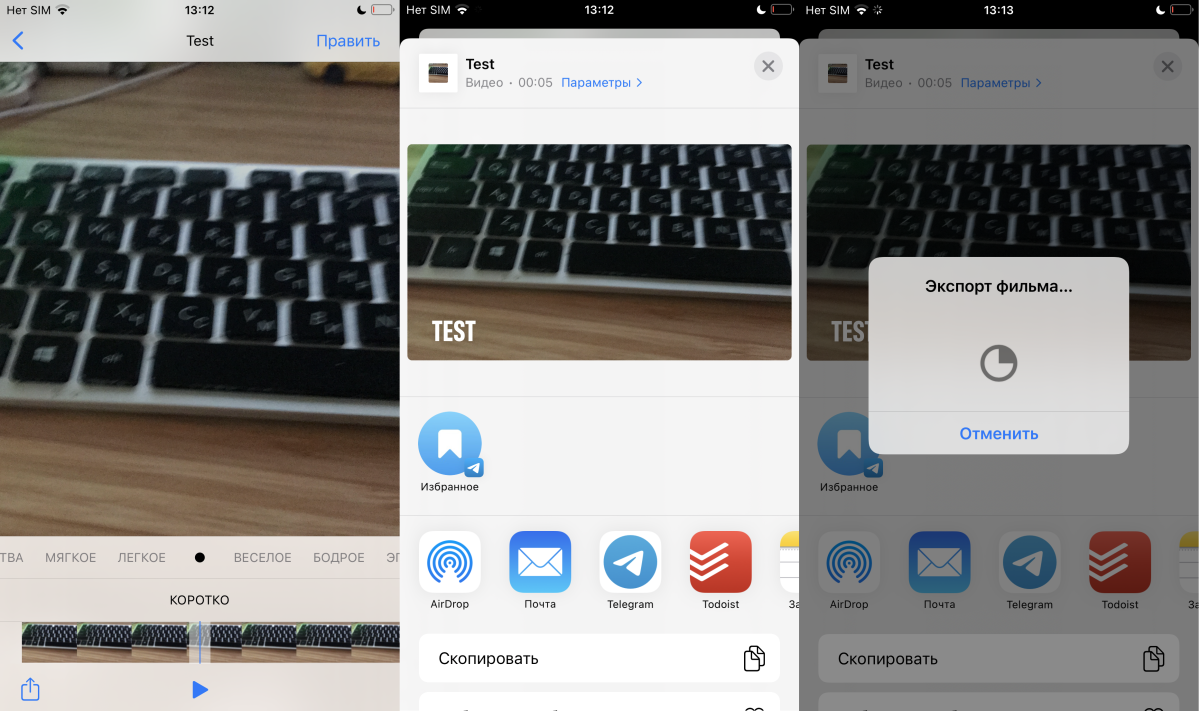 Начнётся воспроизведение видео из альбома. При тапе по экрану откроется редактор, в котором можно его отредактировать. А при нажатии на кнопку поделиться в левом нижнем углу слайд-шоу можно сохранить.