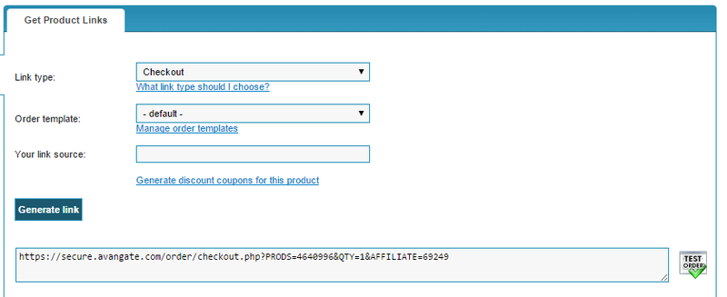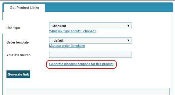 И жмём Add coupon. Затем возвращаемся обратно в раздел генерации ссылок и снова выбираем тот же продукт. В разделе Link Type выставляем Checkout и жмём Generate Link. После чего нам будет предоставлена ссылка на покупку: