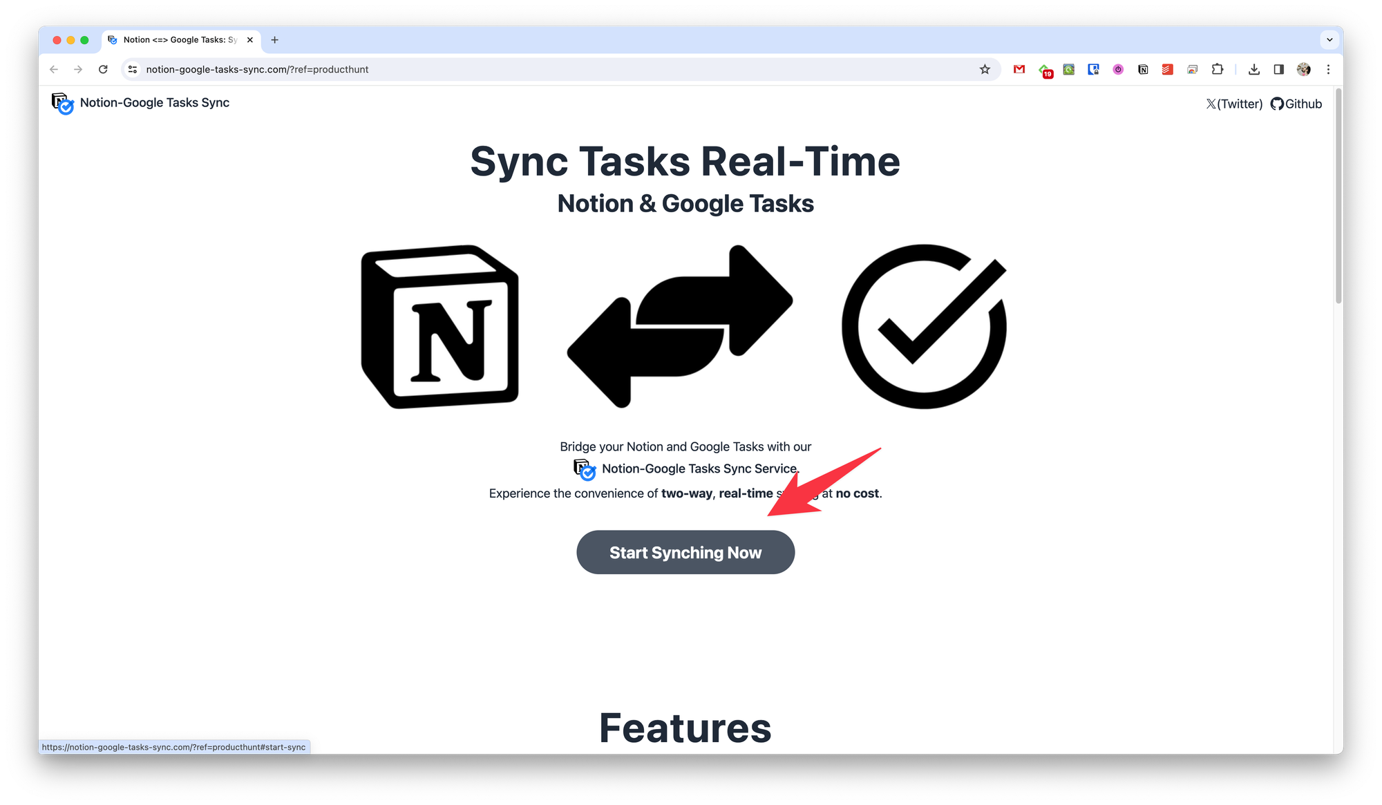 Для этого нужно на главной странице сервиса нажать кнопку Start Syncing Now.
