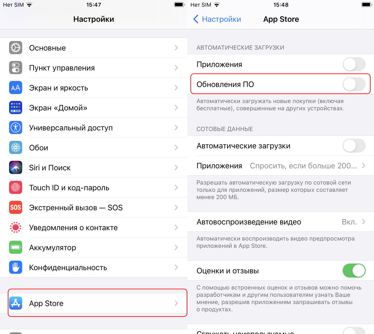 Первым делом следует выключить запланированные обновления на своём мобильном гаджете, чтобы утилита, для которой требуется IPA-файл, не качала обновления автоматически. В противном случае вы не сможете воспользоваться AC2. В телефоне зайдите в «Настройки», пункт «App Store», отключите проверку обновлений.