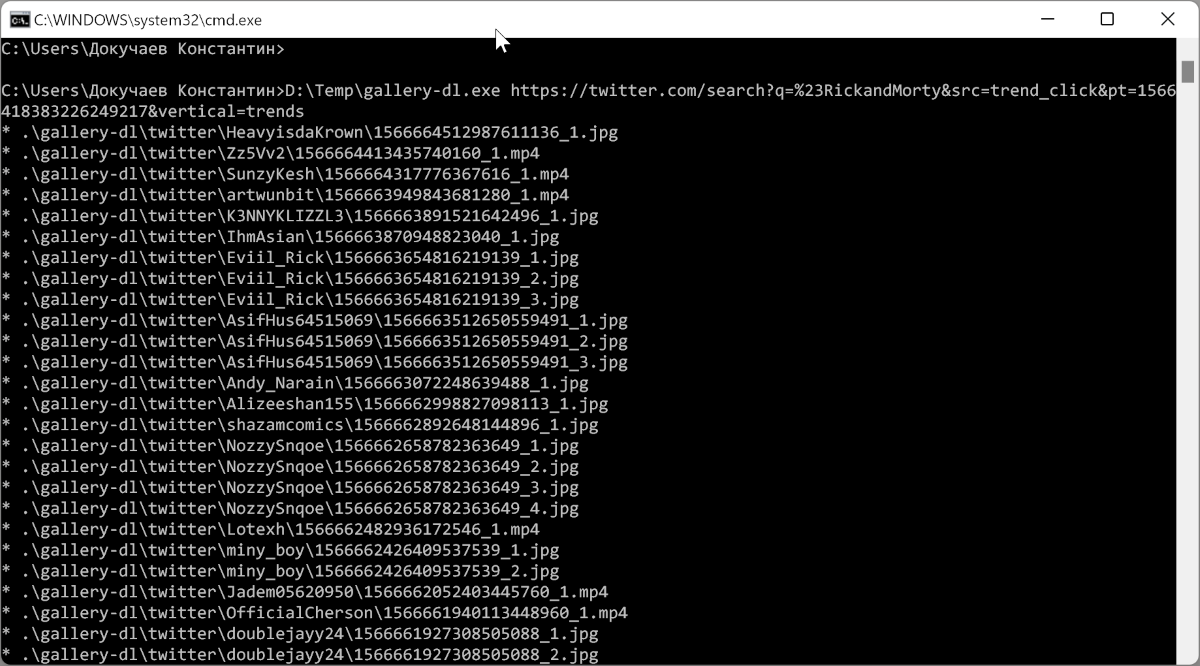 Я покажу пример её работы на версии для Windows и Twitter. Для этого достаточно запустить утилиту в консоли и указать ссылку на тег из Twitter: