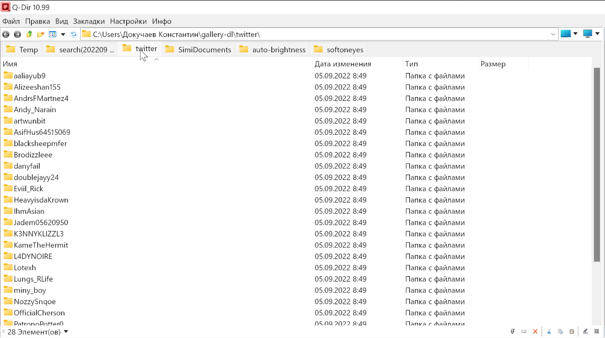 При нажатии на Enter изображения начнут скачиваться с разделением по папкам в соответствии с пользователем.