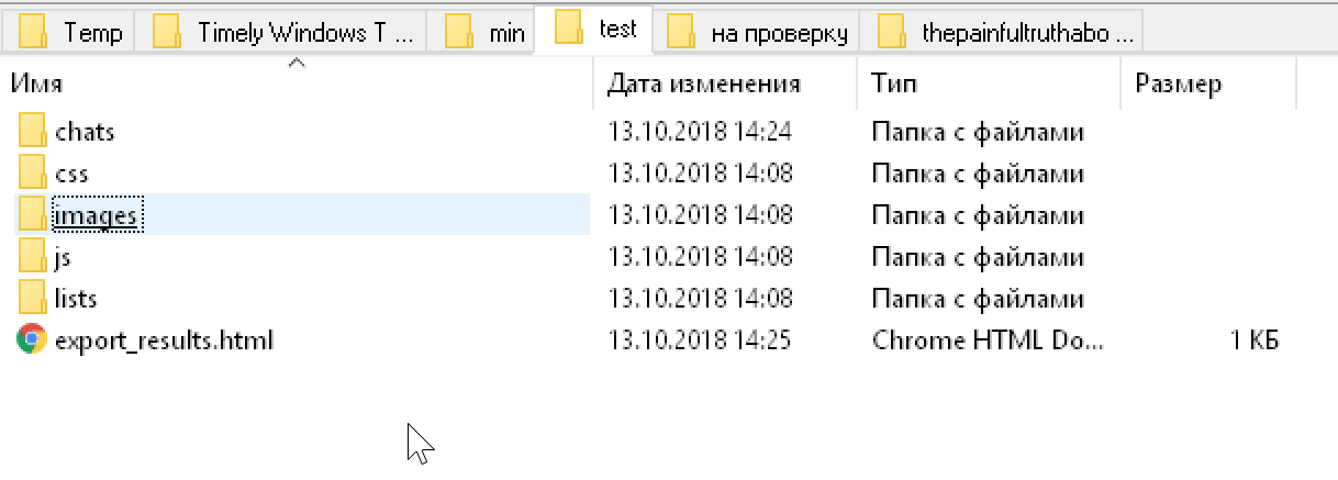 После выгрузки вы получите вот такую папку со всем содержимым экспорта.