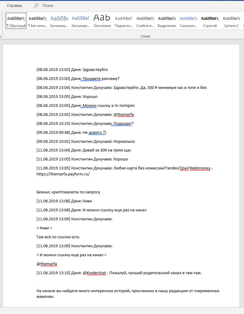 Если всё получилось, нажимайте Копировать и вставляйте переписку в любой текстовый редактор и сохраняйте файл.