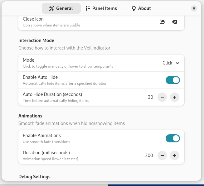 В настройках Veil вы можете настроить не только, какие иконки следует скрывать, но поменять анимации скрытия, иконку скрытия и многие другие параметры.