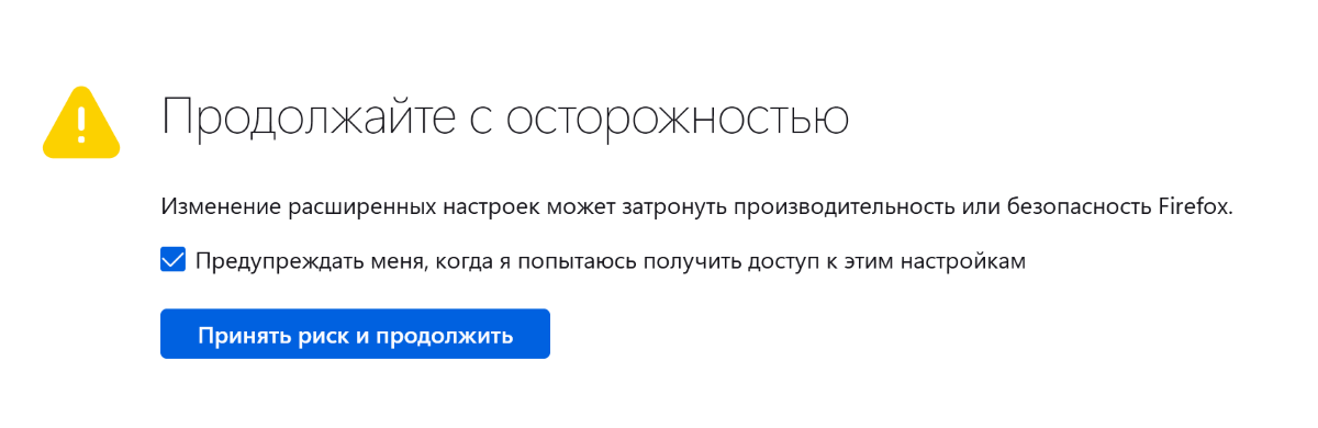 Для этого в адресной строке введите about:config, чтобы перейти в раздел расширенных настроек.