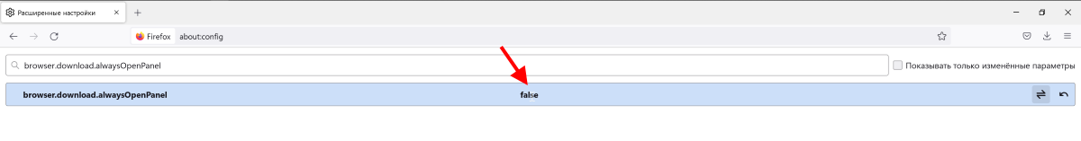 Далее в поле Искать параметр по имени введите следующую мантру browser.download.alwaysOpenPanel
