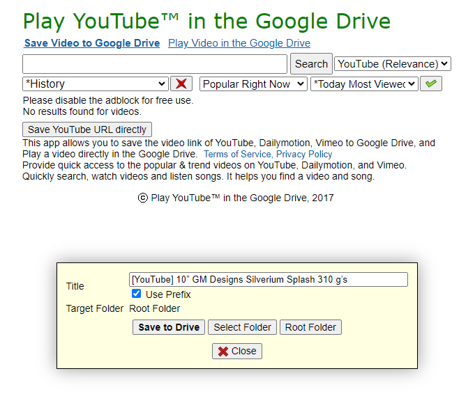 При нажатии на кнопку Save to Drive начнётся скачивание выбранного ролика. Но посмотреть его прямо в Google Диске не получится. При выборе видео оно откроется средствами Play YouTube™ in the Google Drive в отдельной вкладке.