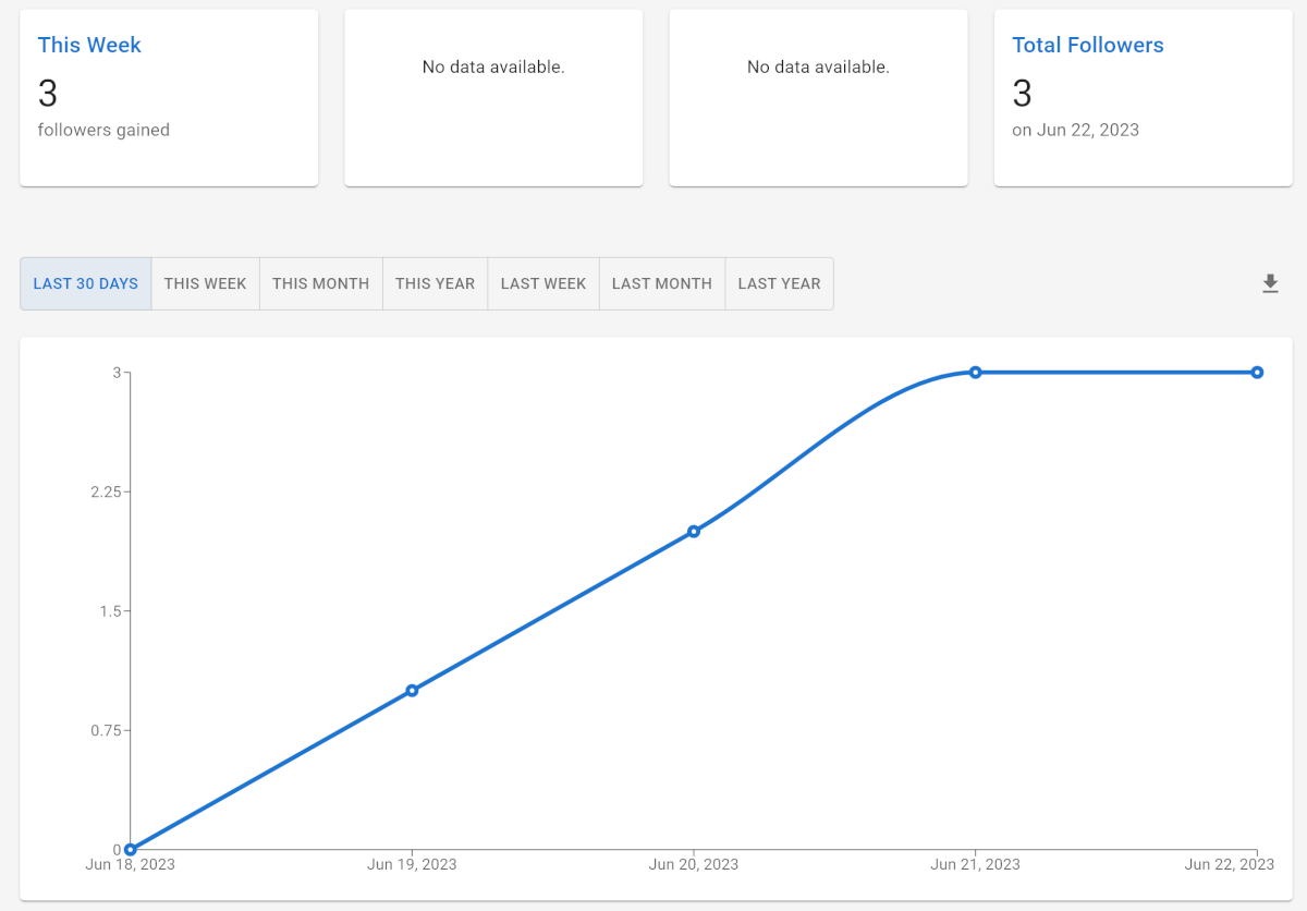 Как и в предыдущем разделе, здесь можно отслеживать изменение числа фолловеров. Отличие в том, что здесь можно выбирать временной отрезок от недели до года. А ещё отчёт можно скачать в формате CSV.