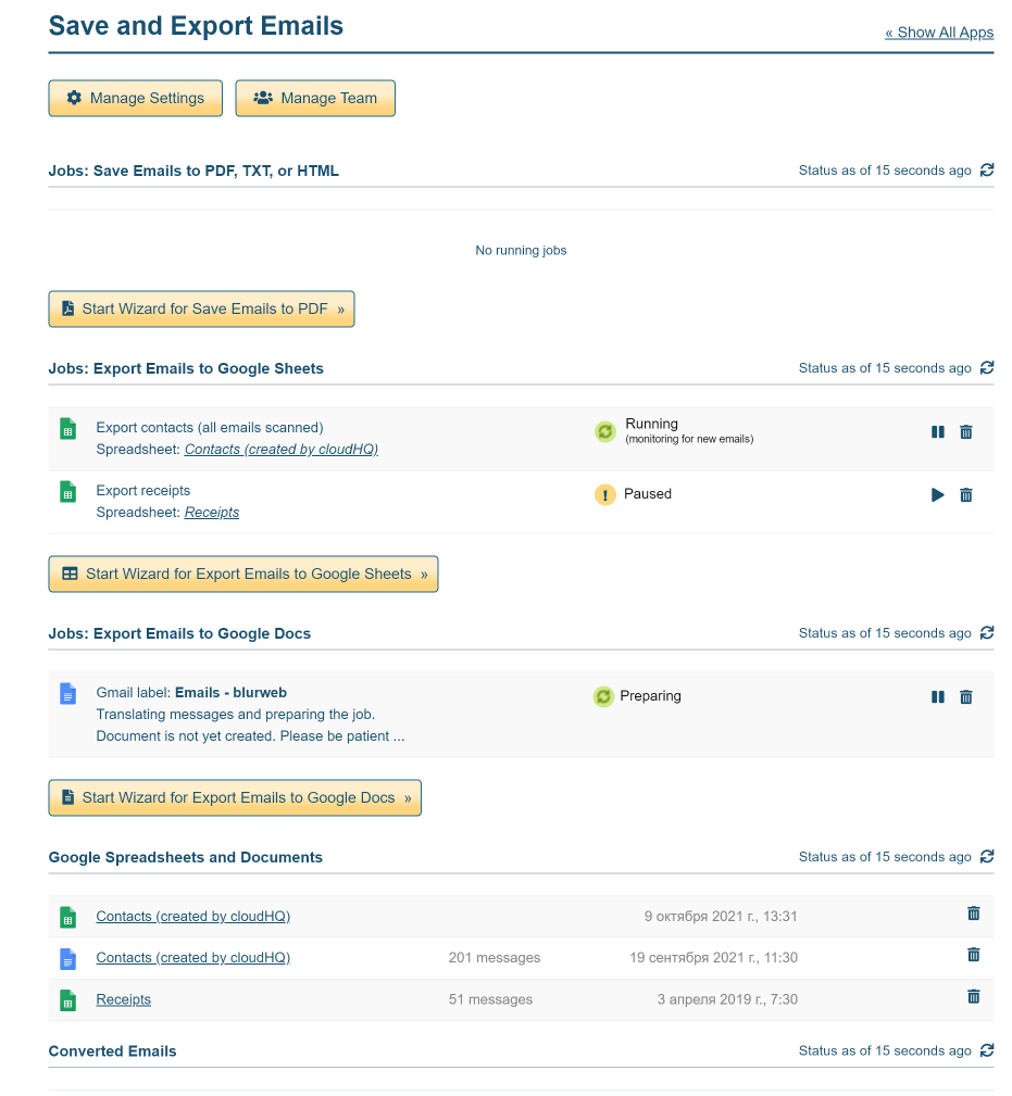 Export Emails to Google Docs by cloudHQ поможет автоматически или вручную сохранять письма из Gmail в Google Docs вместе с вложениями.