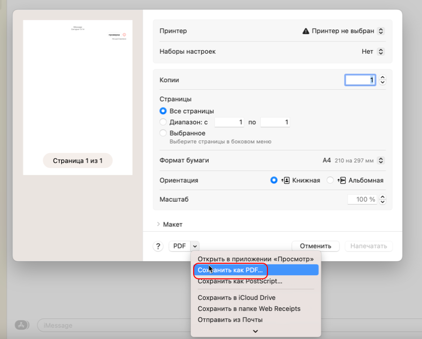 В открывшемся окне выберите пункт Сохранить как PDF.