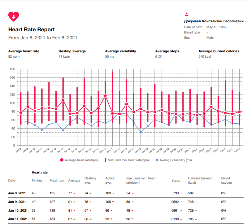 Количество доступных данных в этих отчетах напрямую зависит от количества данных в приложение от Apple. К сожалению, Heart Reports не локализовано на русский язык, как и отчёты. Но вся информация всё равно будет понятна при наличии базовых знаний языка.