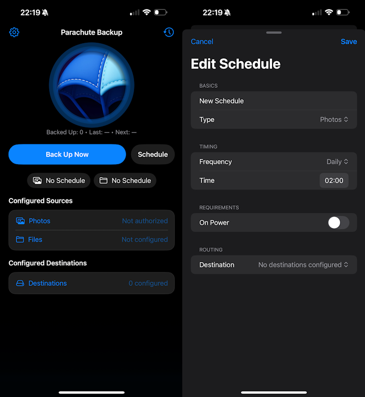 С помощью Parachute Backup вы можете выбрать папку для хранения данных, отличную от iCloud. То есть вы можете указать любой диск, флешку, NAS или папку другого облачного хранилища. Таким образом, вы можете легко синхронизировать данные не только локально, но и между облаками.