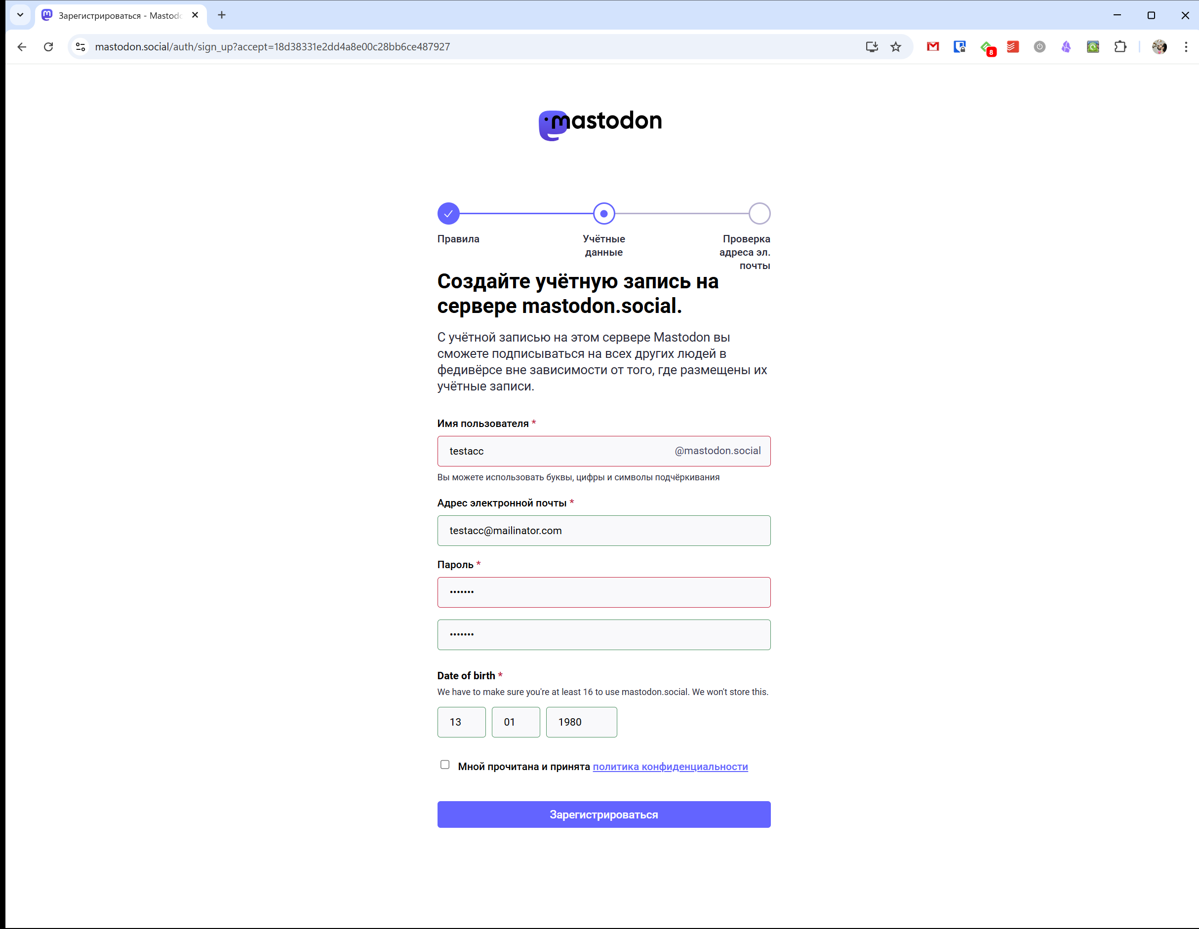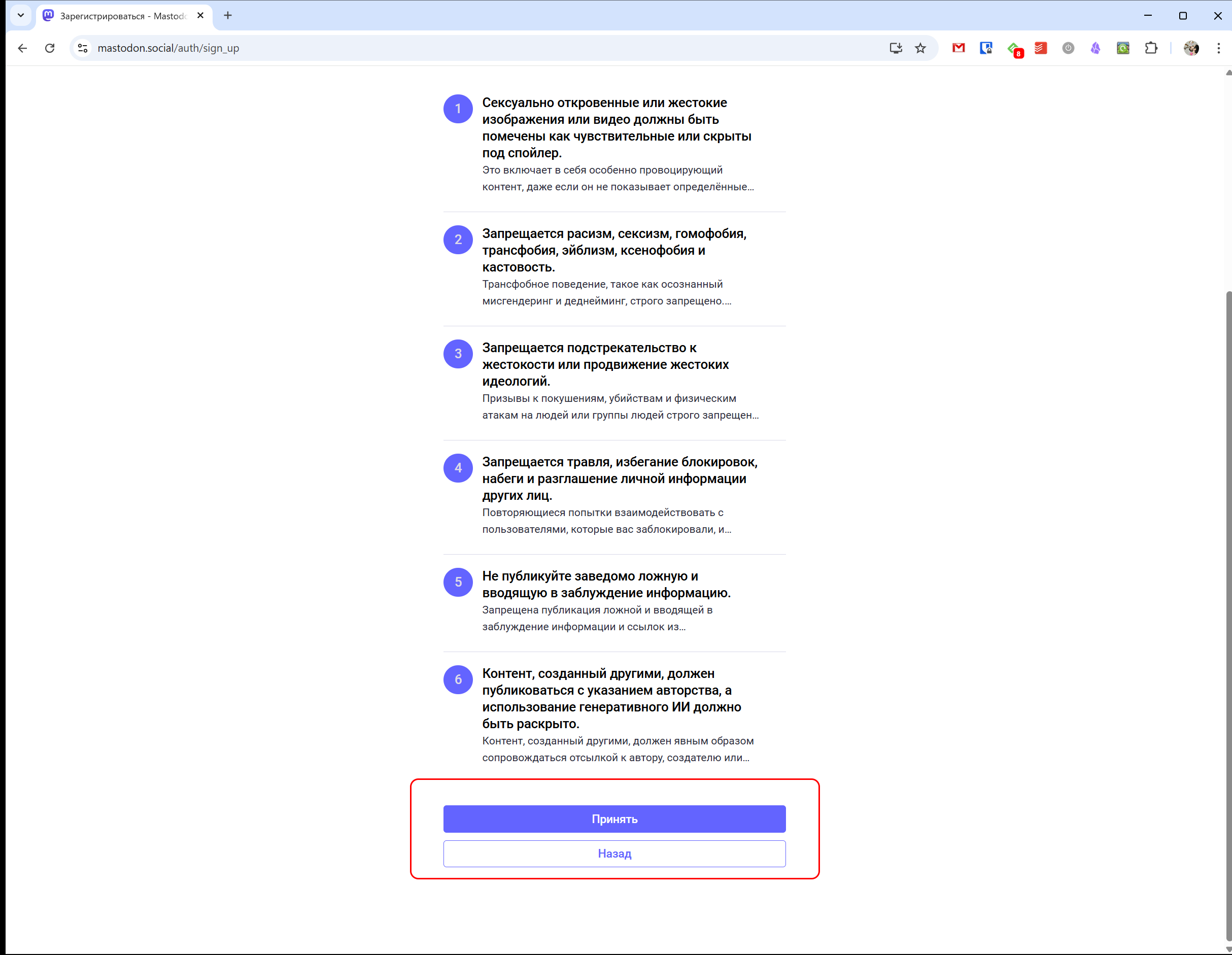 Если не хотите ни о чём думать, то самый простой способ — создать акк на основном сервере Mastodon. Сам процесс регистрации при этом не меняется между серверами.