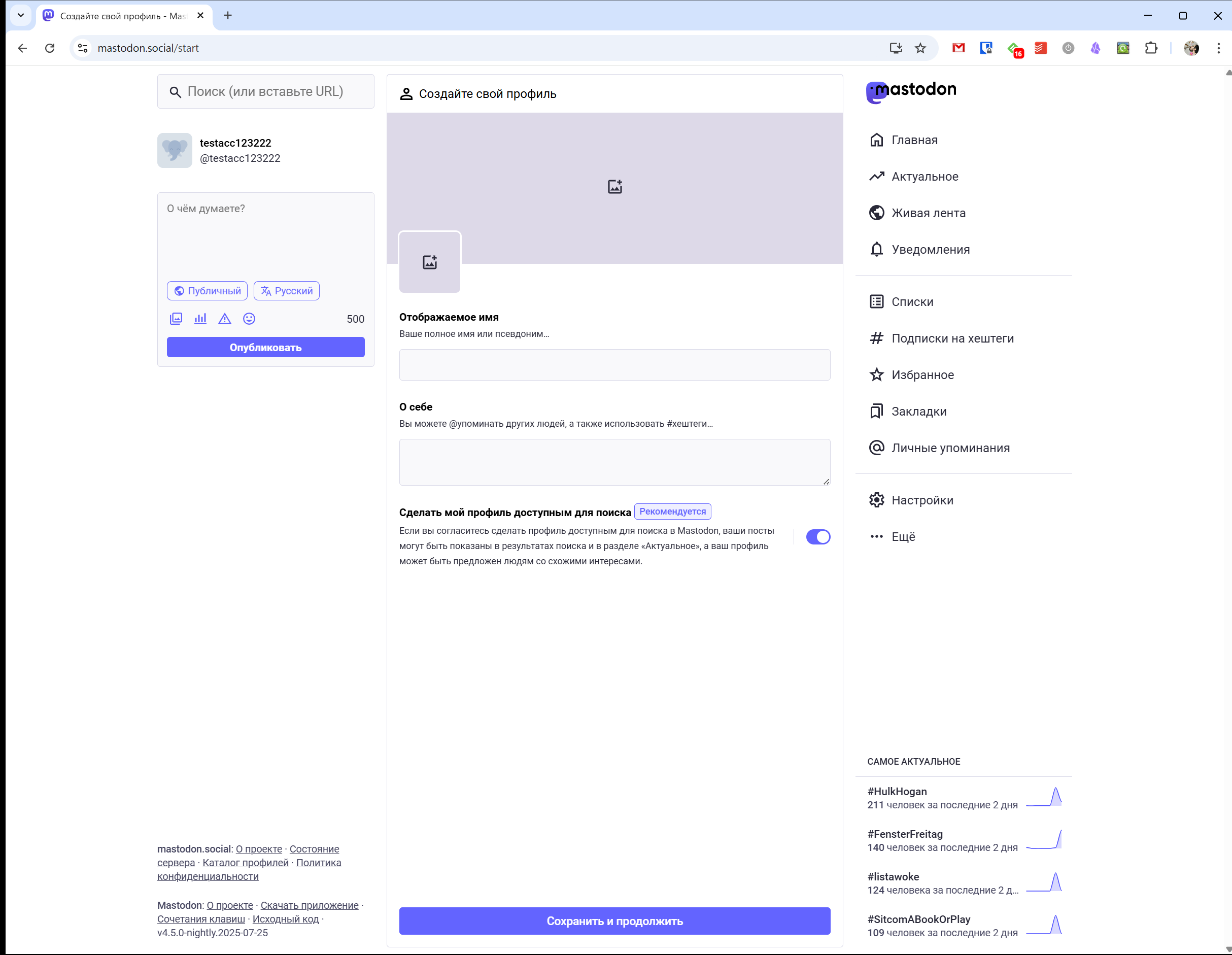 После подтверждения адреса почты вы сразу же можете начинать пользоваться вашим аккаунтом в Mastodon.