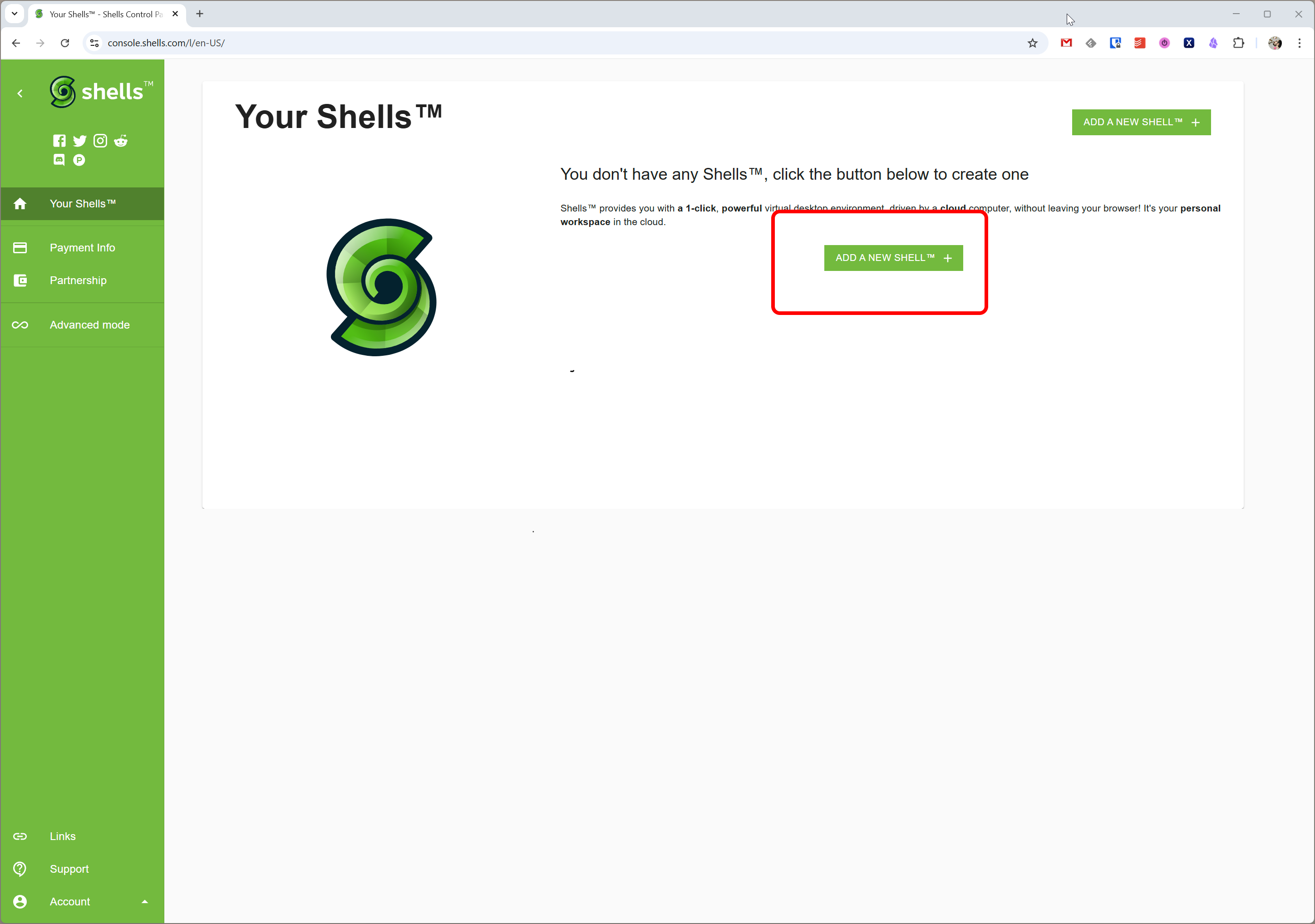 Я нисколько не преувеличивал, когда сказал, что Shells позволяет настроить рабочий стол за пять минут. Всё, что от вас требуется, — после регистрации в разделе Your Shells нажать кнопку Add a new Shell.
