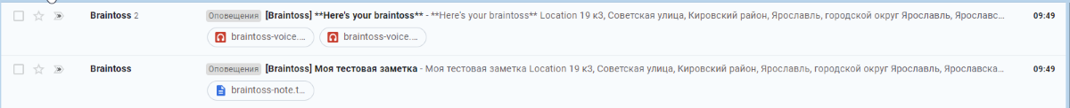 Созданные заметки отправляются на email, указанный в настройках приложения. Если вы укажете обычную почту, вам начнут приходить письма с заметками: