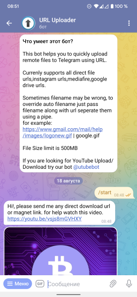 Ещё один вариант решения проблемы — это телеграм-бот @uploadbot и мобильная версия VLC. Просто отправьте боту магнет-ссылку на торрент, в ответ он вернёт прямую ссылку на видеофайл.