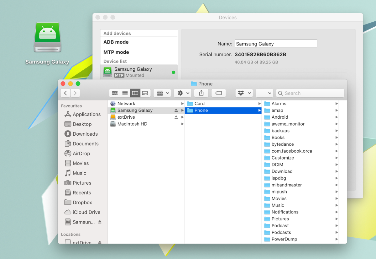 К сожалению, процесс передачи не будет таким простым, как AirDrop. Для начала работы нужно установить MacDroid на Mac и подключить смартфон по USB.
