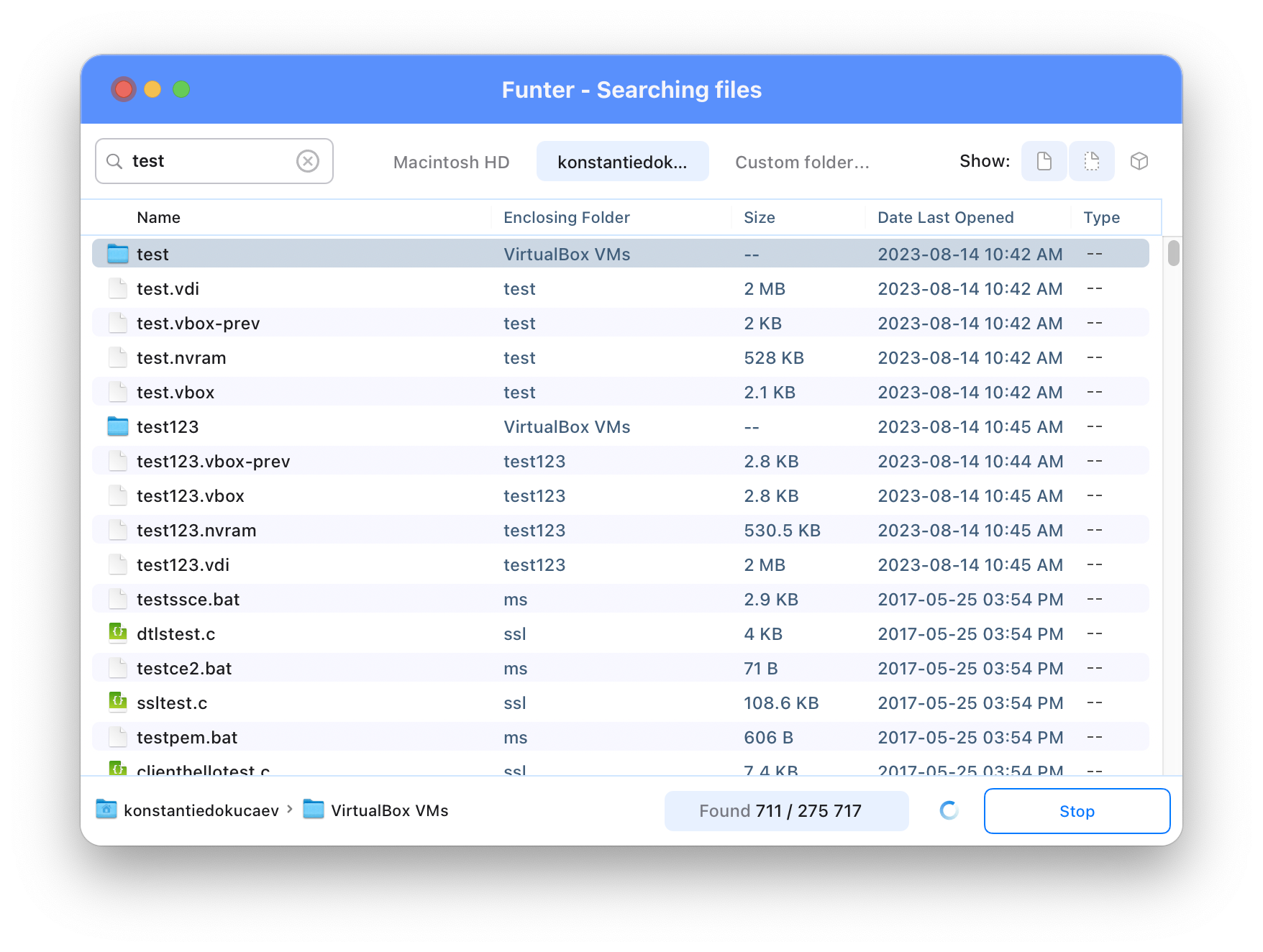 Отсюда же можно ввести поисковый запрос по скрытым файлам и папкам. Поиск по умолчанию работает по пользовательской папке, но можно переключиться на поиск по всему диску или указать свою собственную папку.