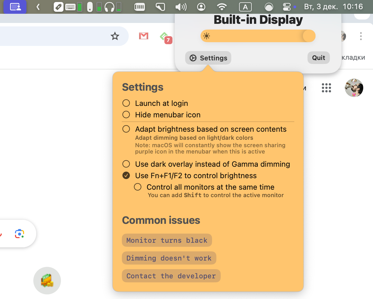 Возможно, вы не знали, но macOS при изменении яркости дисплея накладывает на него тёмный слой, у которого меняется степень затемнения, что и позволяет менять яркость монитора. Но из-за этого может ухудшиться восприятие отображаемой на нём информации.