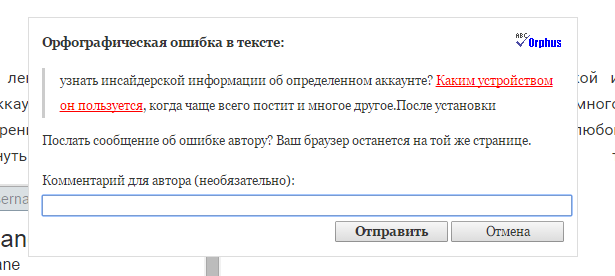 Система Orphus позволяет читателям вашего сайта сообщать обо всех опечатках. Чтобы посмотреть, как это работает, просто выделите любой текст в этом посте и нажмите Ctrl+Enter. Встроить эту систему в свой блог легко. Сложно её встроить красиво и так, как вам надо. Поэтому я решил рассказать, как это сделать проще всего