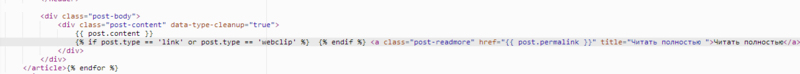 Этот код необходимо добавить в div поста-ссылки. В теме его будет просто найти по тегу {{ link.content }}.