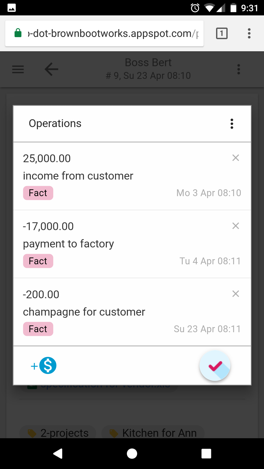 Ключевые процессы управления бизнесом — определить задачи, поставить задачи людям, контролировать исполнение, следить за финансовыми показателями. Всё это необходимо иметь руководителю мобильно и в режиме онлайн. Поэтому сервис Brown Boot Works предоставляет функции как для управления задачами, так и для управления бюджетами.