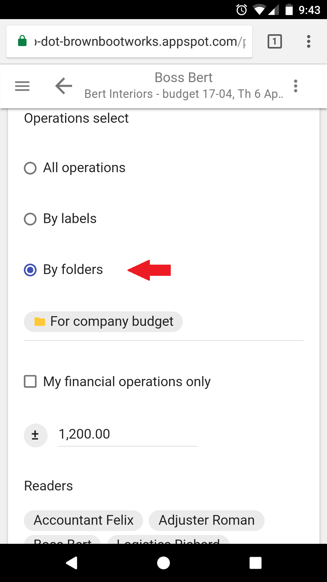 Читатели. Вы можете задать для бюджета список читателей. Читатели смогут видеть в своём списке ваш бюджет, смогут просмотреть настройки бюджета и просмотреть таблицу бюджета с данными. Других полномочий у читателей нет. Читателями могут быть все пользователи компании, а не только пользователи РФО.