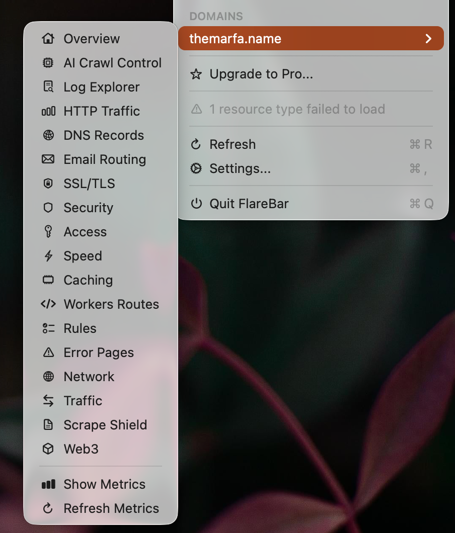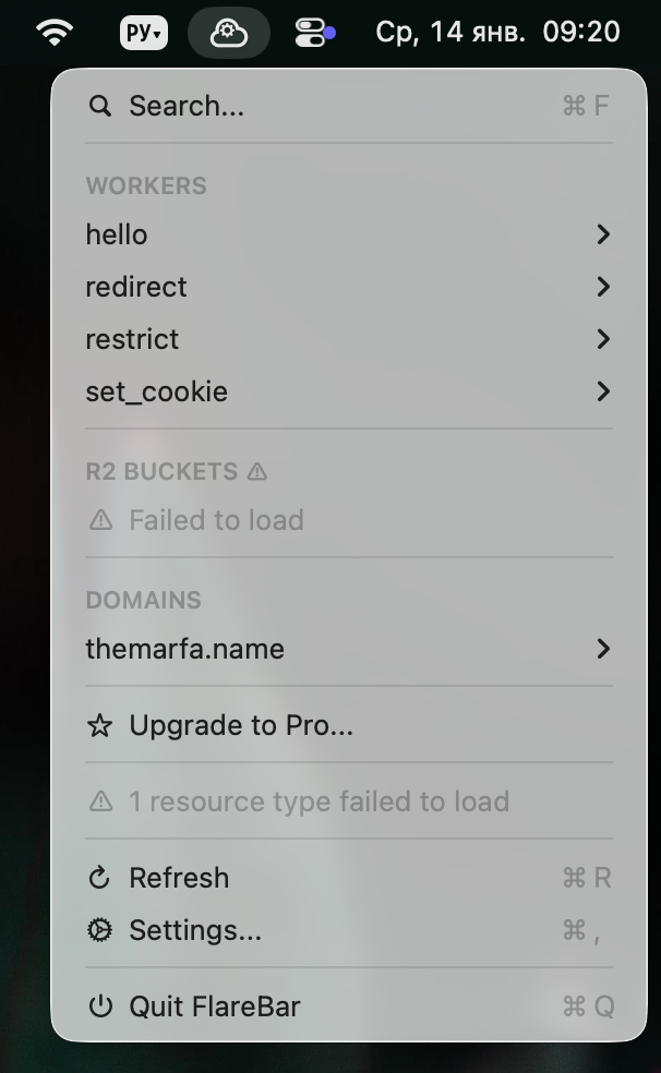 Полезным решением в таком случае может оказаться приложение FlareBar, которое добавляет в Строку меню возможность быстро просматривать или обновлять различные параметры в вашем аккаунте Cloudflare.