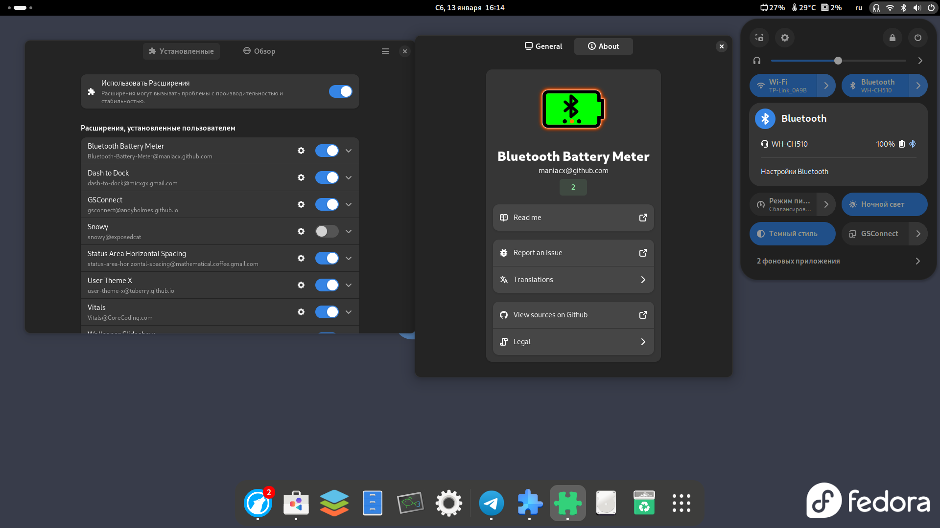 Его можно активировать с помощью экспериментальной настройки Bluez. После чего в настройках Питания появится отображение заряда. Но это по-прежнему неудобно и не то, что нам нужно.