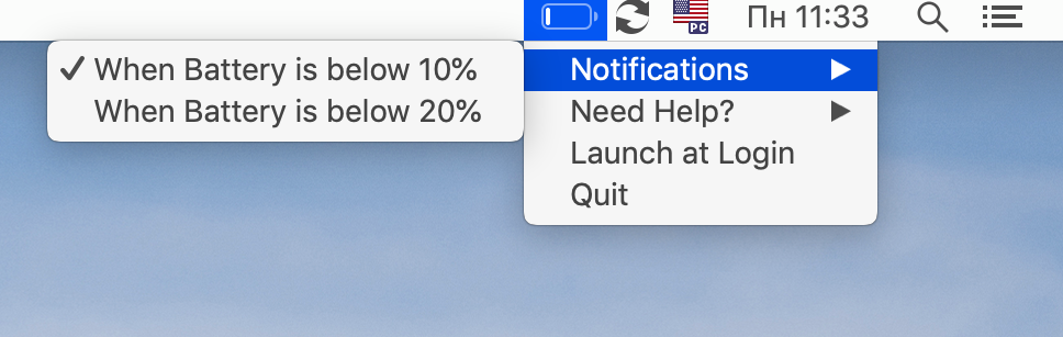 А вот так на macOS, где дополнительно можно указать при каком уровне заряда получать оповещения.