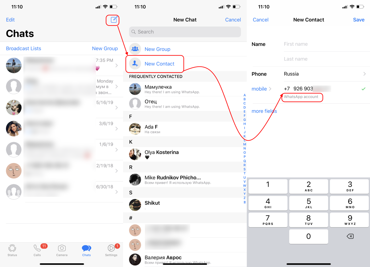 Создайте новый диалог, выберите создание нового контакта и в поле мобильный укажите номер телефона нужного человека.