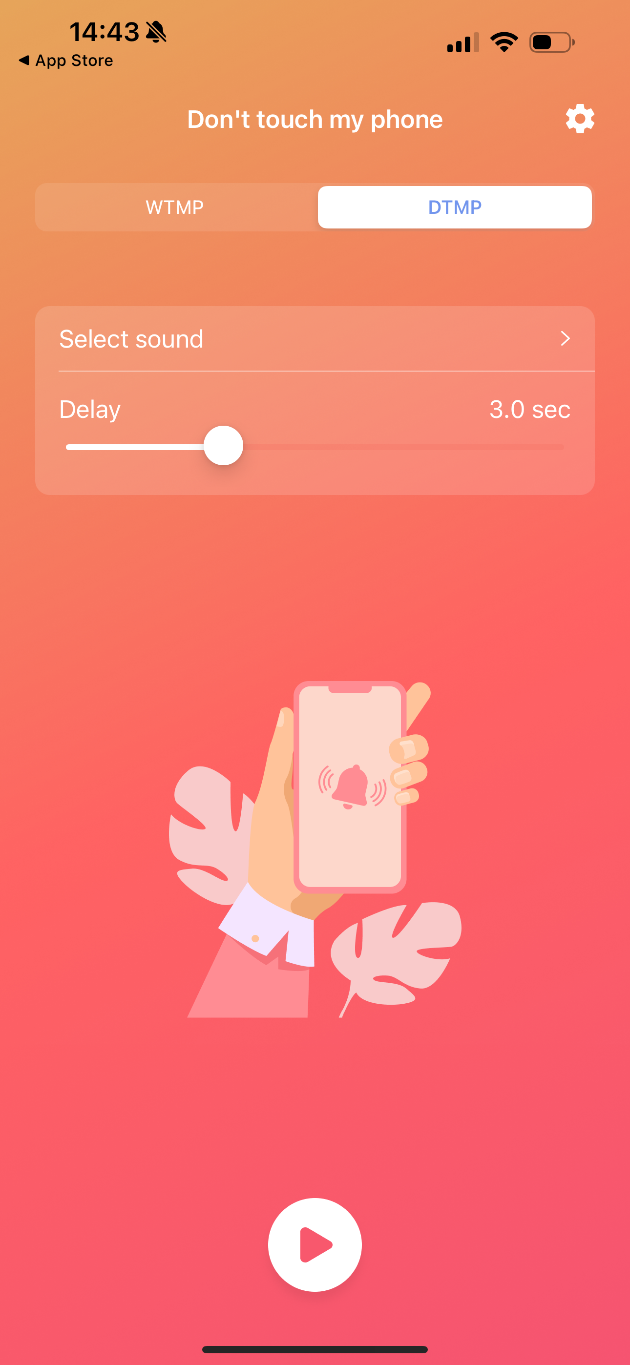 Второй режим — Don`t touch my phone. Активируется так же, как и первый, но в этот раз можно выставить задержку до его срабатывания и указать мелодию сигнализации.