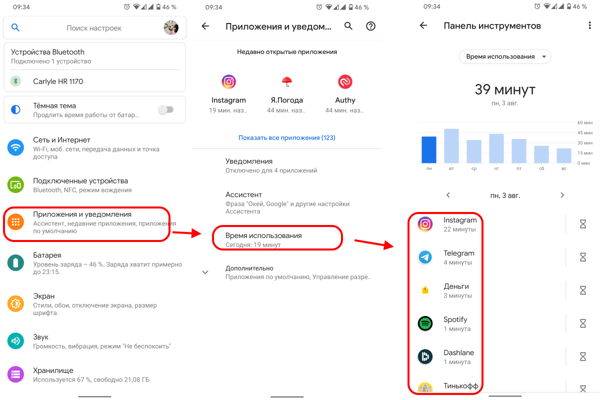 На Android чтобы узнать время, проведённое в любом приложении, откройте Настройки. Здесь перейдите в раздел Приложения и уведомления, затем нажмите Время использования.